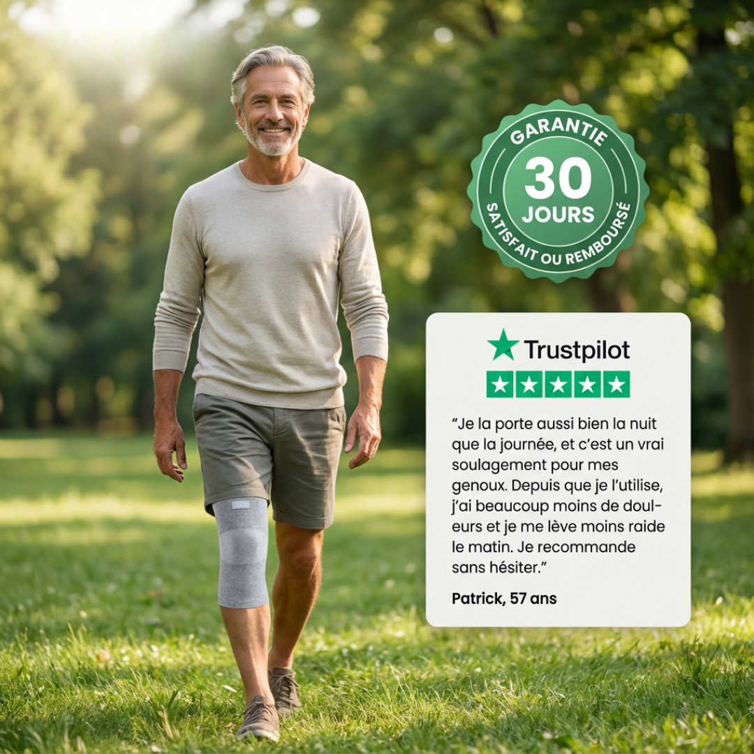 Fabriquée à partir de fibres souples et respirantes, cette bande s’adapte naturellement à la morphologie du genou. Elle reste bien en place, sans glisser ni comprimer excessivement. Sa texture légère permet un port prolongé sous un pantalon ou pendant une activité physique, sans sensation d’inconfort ou d’échauffement.