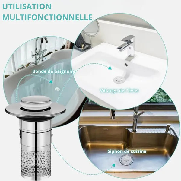 Le filtre amovible se nettoie en quelques secondes sous l’eau courante. Son entretien rapide garantit une hygiène impeccable et prévient la formation de mauvaises odeurs. Offrez-vous une solution fiable et efficace pour garder vos canalisations propres et fonctionnelles.