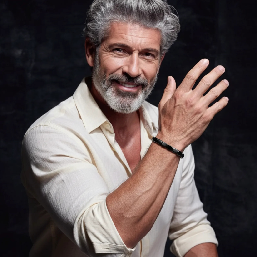 Conçu à partir de pierres d’hématite naturelle, ce bracelet diffuse une énergie magnétique subtile qui aide à renforcer la vitalité et la clarté d’esprit. Chaque maillon poli reflète la lumière tout en apportant un effet apaisant et équilibrant au quotidien.