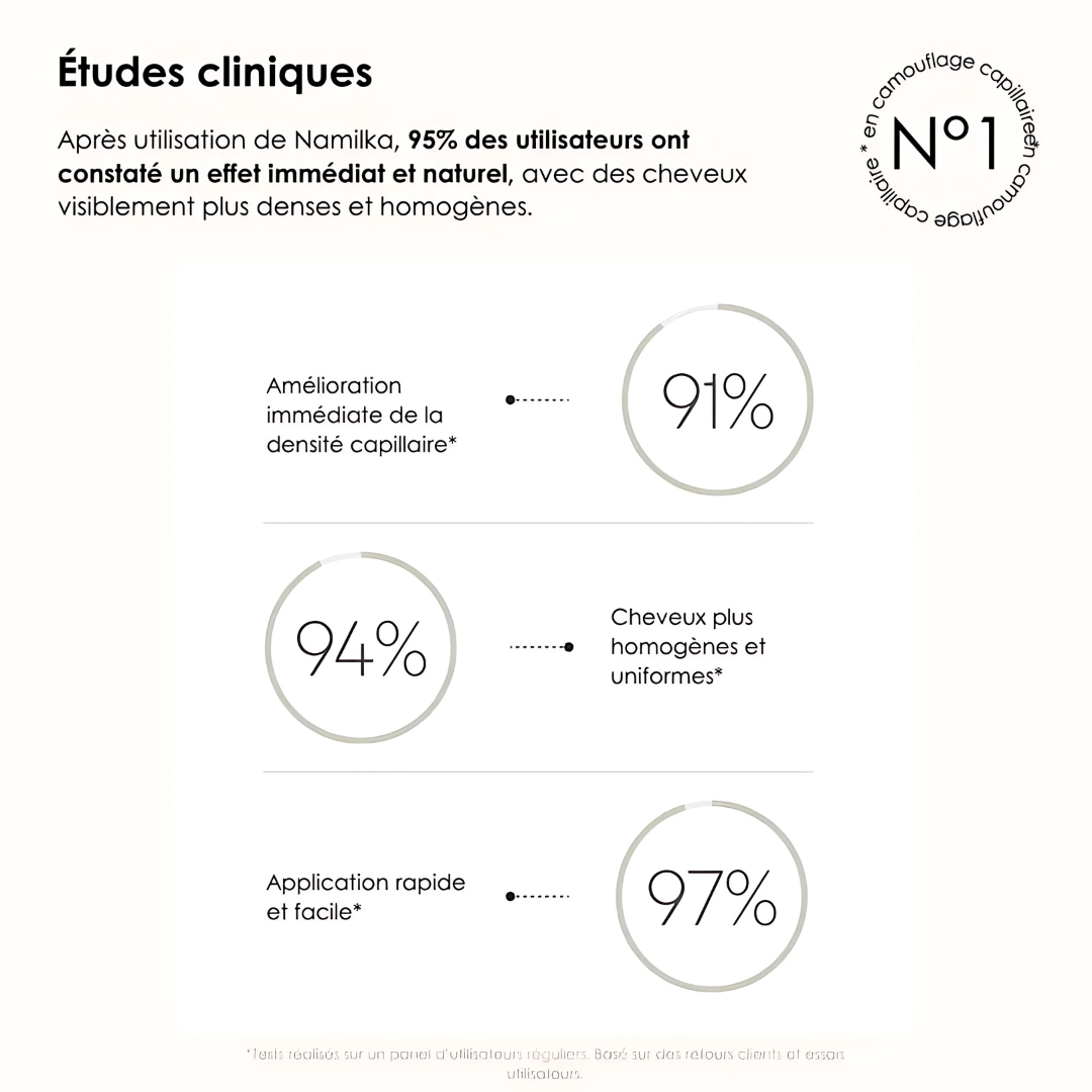 Ce camouflage capillaire est une solution express pour masquer instantanément les zones clairsemées. Il agit en 10 secondes, en adhérant aux cheveux existants pour créer un effet densifiant immédiat. L’application est simple, rapide, et le rendu est bluffant, même de très près.