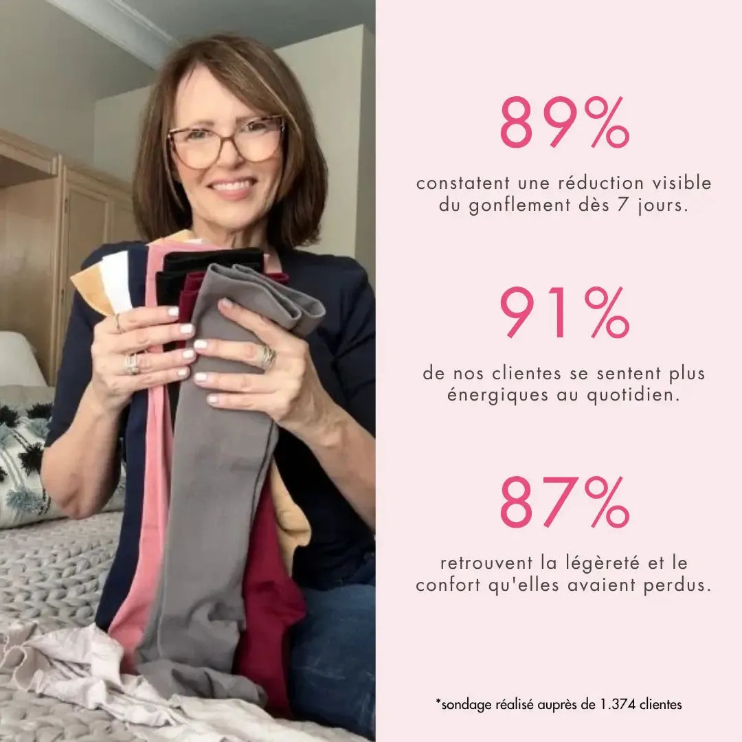 Très agréables à porter, elles ont vraiment diminué mes douleurs de jambes en quelques jours.