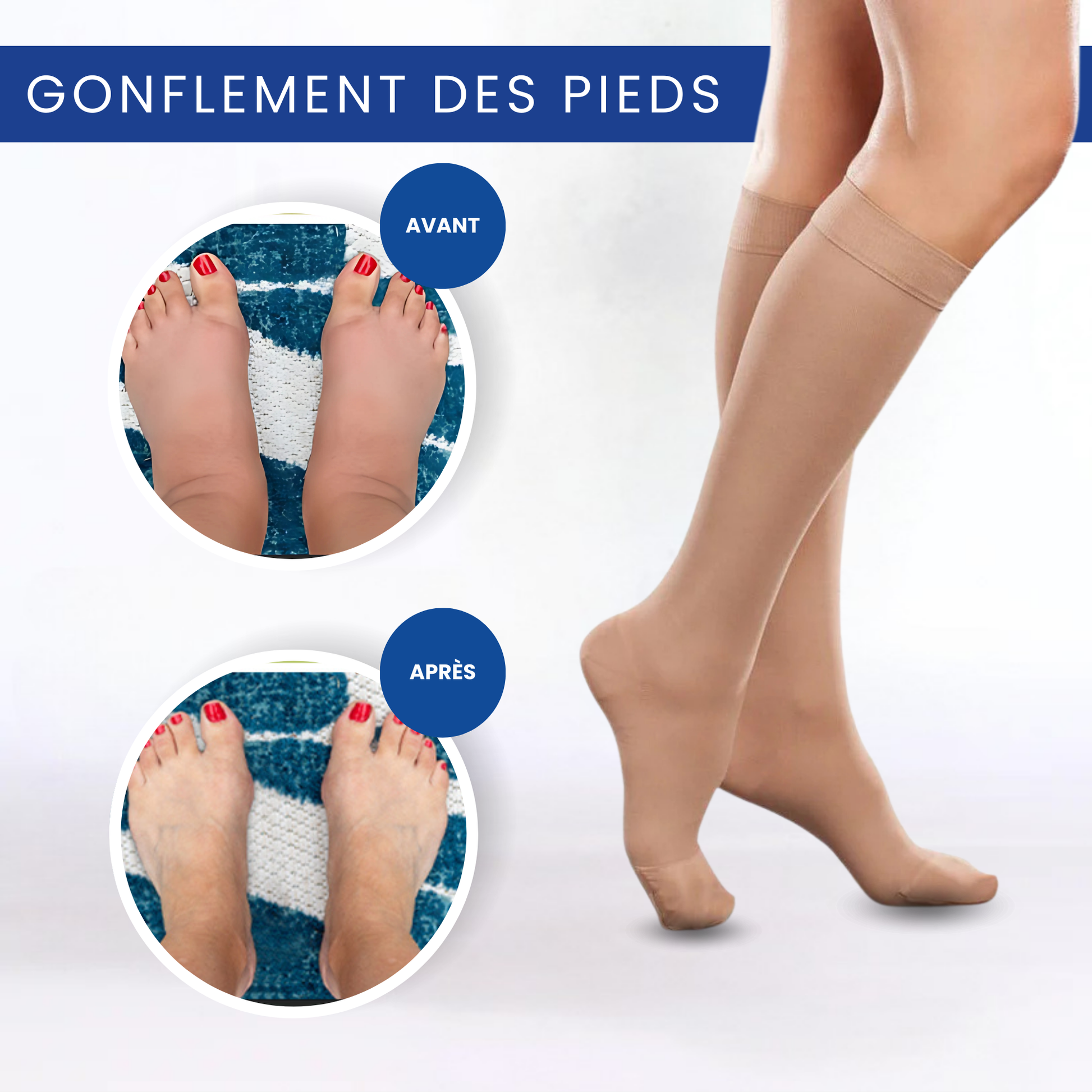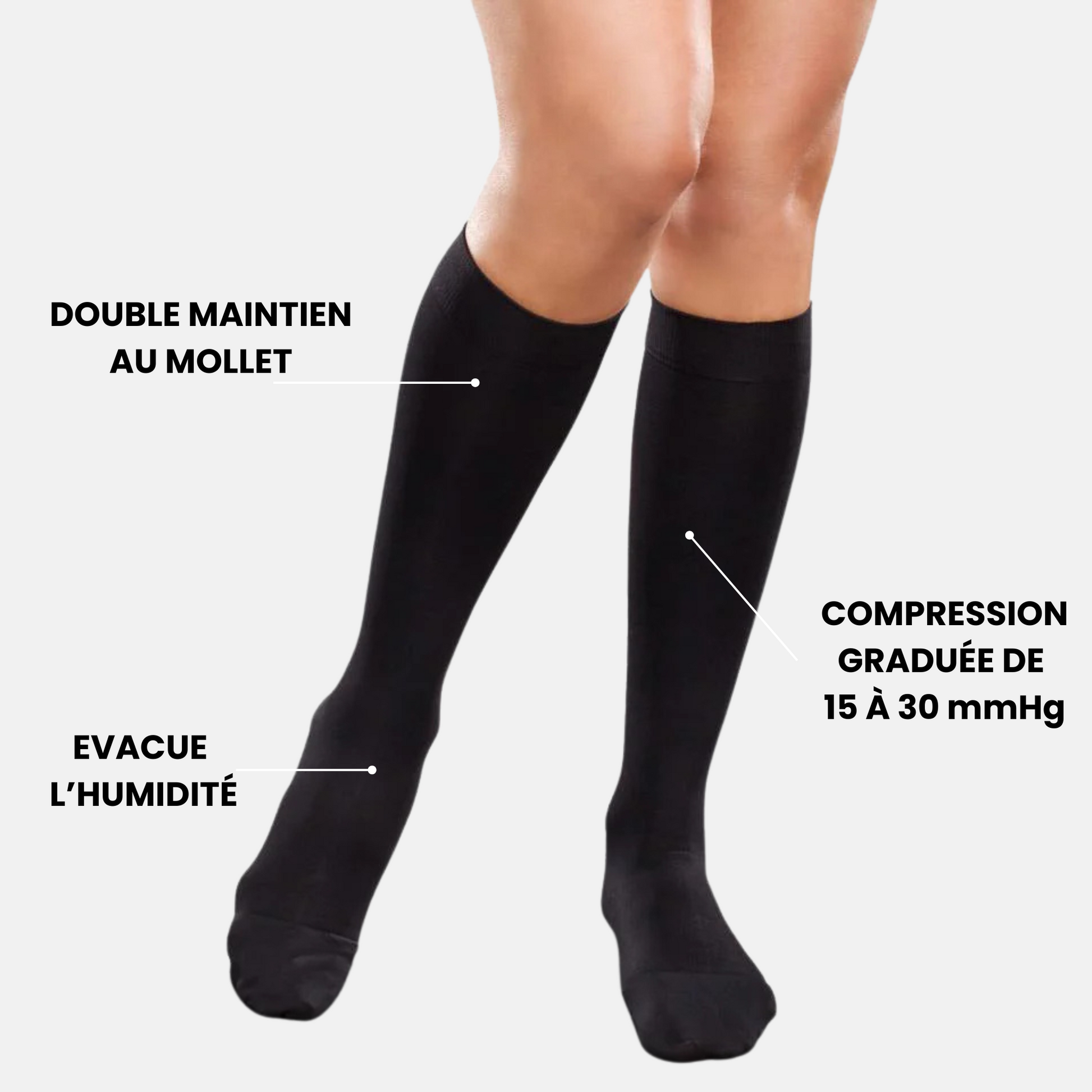 Fatigue, douleurs ou gonflements ? Ces chaussettes de contention sont conçues pour offrir un maintien optimal grâce à une compression graduée de 15 à 30 mmHg. Elles stimulent la circulation sanguine et réduisent les sensations de jambes lourdes, tout en prévenant les varices et l'insuffisance veineuse. Parfaites pour les longues journées debout, les voyages ou les activités sportives.
