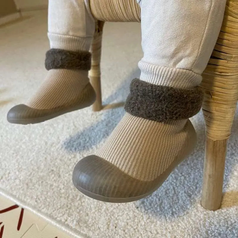 Ces chaussons en coton épais sont parfaits pour garder les pieds de bébé bien au chaud durant la saison froide. Leur maille respirante et leur intérieur doublé offrent une sensation agréable, tout en assurant un maintien stable lors des premiers pas.