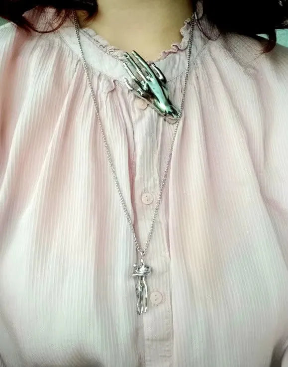 Ce collier représente l’union sincère entre deux âmes. Son design raffiné capture l’instant d’un étreinte pleine de douceur. L’or délicatement poli reflète la lumière avec élégance, ajoutant une touche précieuse à chaque tenue, qu’elle soit quotidienne ou plus habillée.