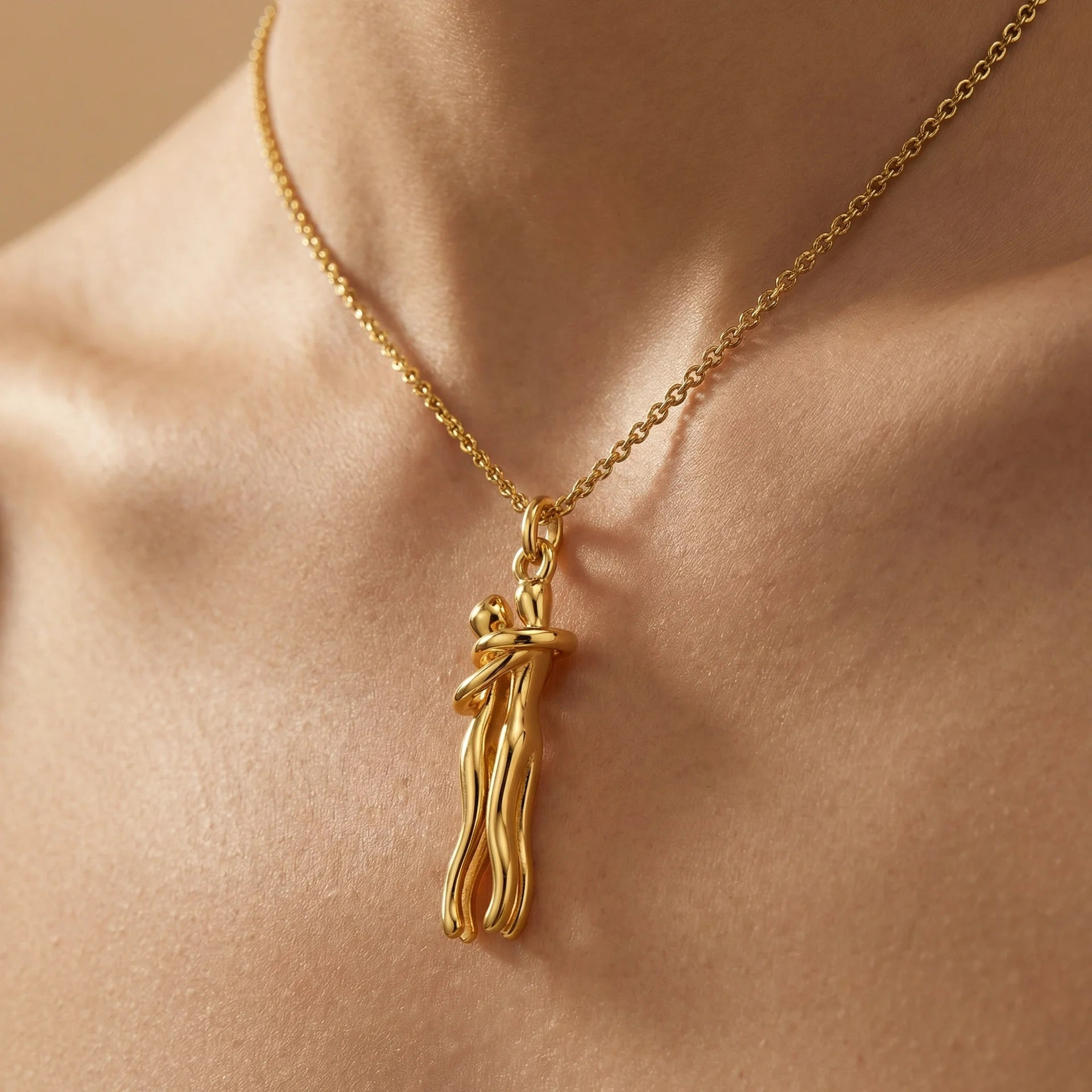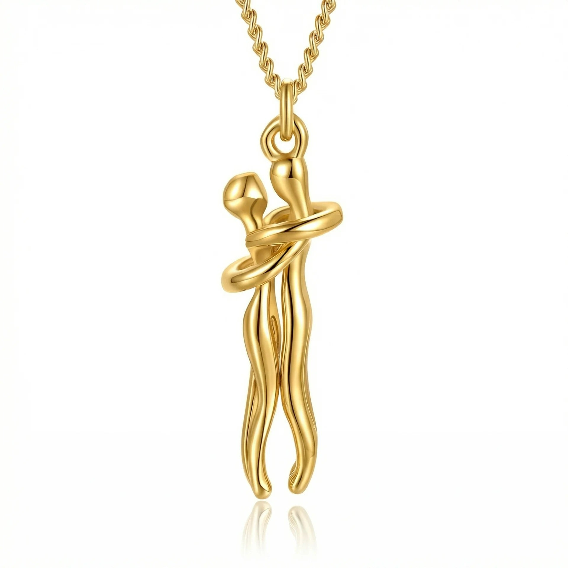 Ce collier délicat représente l’union et la complicité à travers un pendentif formé de deux silhouettes enlacées. Son design épuré apporte une touche de sens et de finesse à votre tenue. Ce bijou se distingue par son style moderne et sa dimension symbolique qui évoque l’amour, la tendresse et le lien profond entre deux personnes. Idéal pour offrir lors d’une occasion spéciale, il transmet un message sincère tout en restant élégant et discret au quotidien.