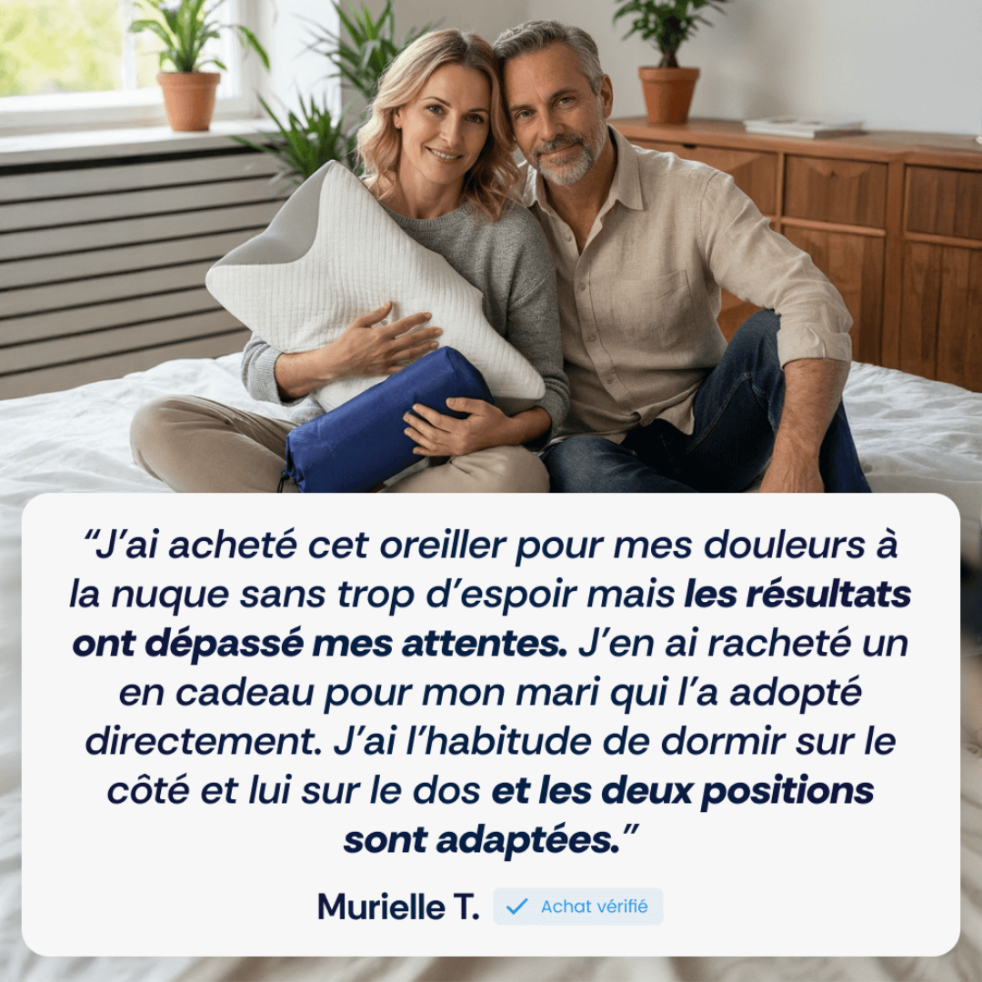 Je souffre de douleurs cervicales et ce coussin m’a vraiment aidé à mieux dormir. Très confortable et facile à utiliser.