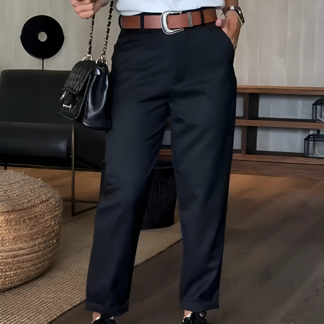 Diese hochtaillierte Straight-Blazer-Hose ist der perfekte Mix aus Eleganz und Komfort. Mit ihrem geraden Schnitt und der klassischen Passform sorgt sie für eine schmeichelhafte Silhouette, während die dezente Farbgebung (Grau oder Schwarz) vielseitige Kombinationsmöglichkeiten bietet. Ob für das Büro, ein Treffen mit Freunden oder einen stilvollen Freizeitlook – diese Hose ist ein Must-have!