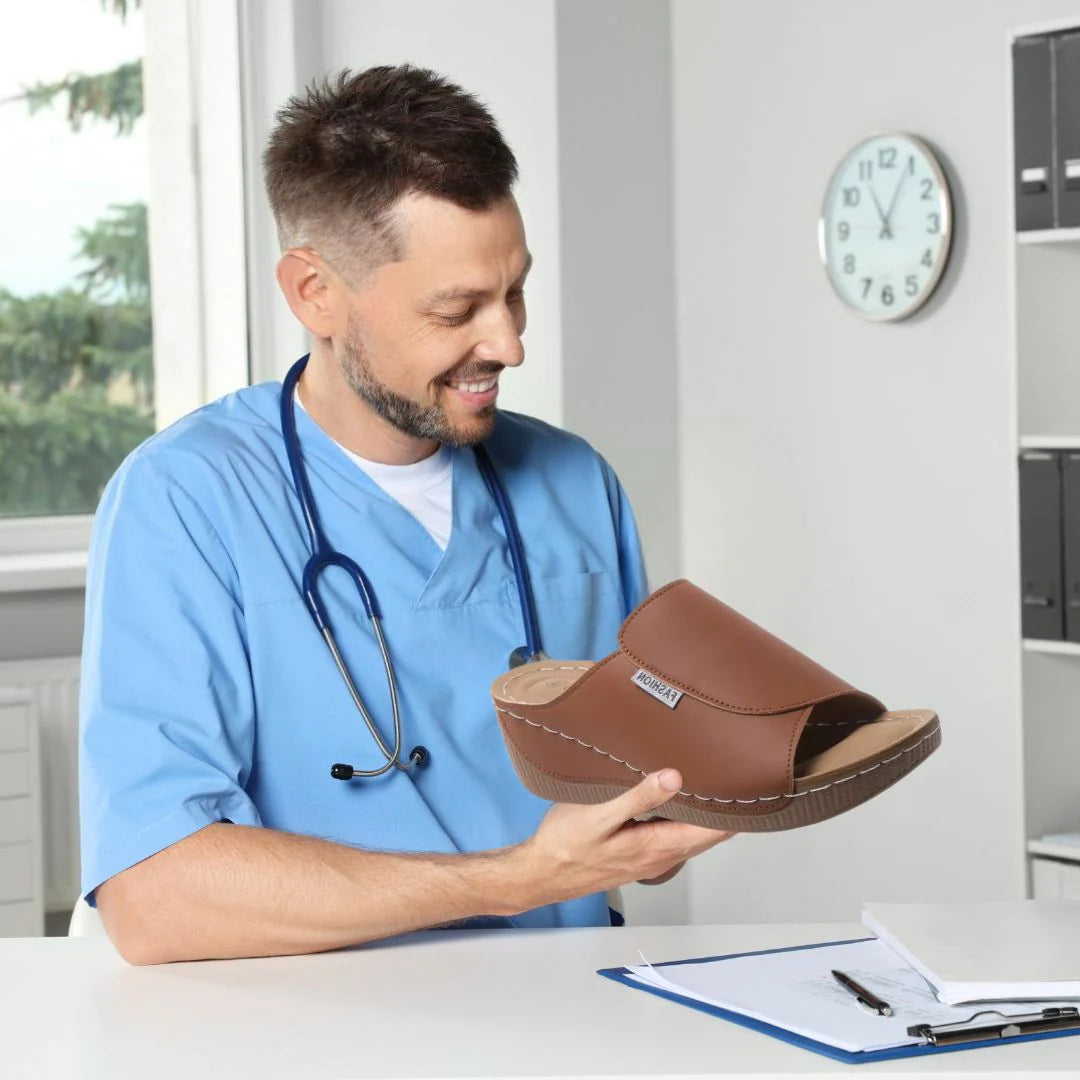 Diese Sandalen wurden speziell entwickelt, um Schmerzen an Füßen, Fersen oder Gelenken zu lindern. Dank der ergonomisch geformten Sohle werden Druckstellen reduziert und die Körperhaltung unterstützt – perfekt für den Alltag.