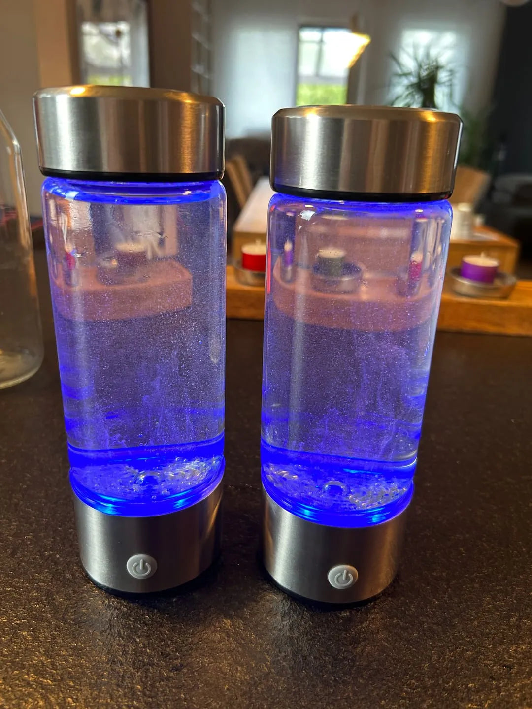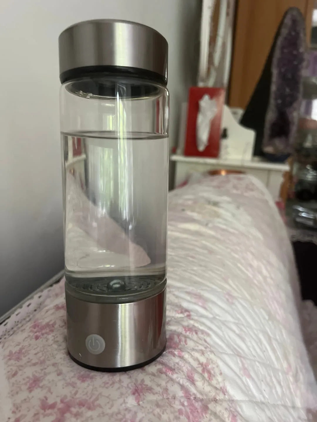 Dieses hochwertige Wasserflaschen-System verwandelt normales Leitungswasser in hydrogenreiches Trinkwasser. Durch die elegante Glas- und Edelstahlkonstruktion fügt es sich stilvoll in jeden Alltag ein und überzeugt zugleich durch seine Funktionalität. Ein ideales Accessoire für Büro, Fitnessstudio oder unterwegs.