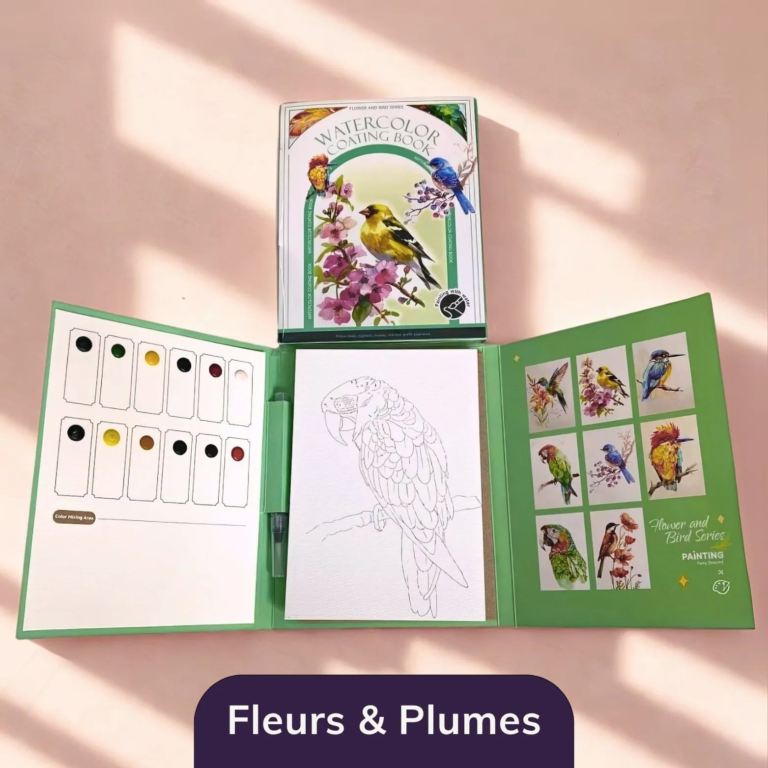 Chaque feuille possède un grain agréable qui permet des couleurs nettes et harmonieuses. Le pinceau à eau facilite le travail des nuances sans matériel supplémentaire. La pochette incluse protège l’ensemble du kit et permet de l’emporter facilement, afin de créer des moments de tranquillité où l’on veut.