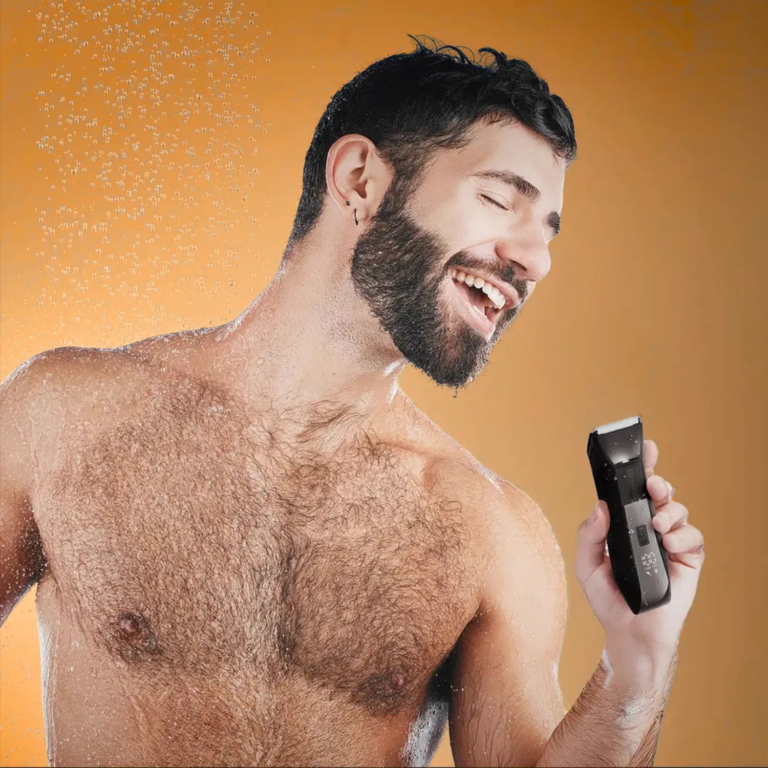 Ausgestattet mit einem kraftvollen Motor sorgt das Gerät für ein gleichmäßiges Ergebnis, auch bei dichterem Haarwuchs. Dank der wasserdichten Verarbeitung lässt sich der Rasierer problemlos unter der Dusche verwenden und danach hygienisch reinigen. Die präzise LED-Anzeige informiert jederzeit über den Akkustand.