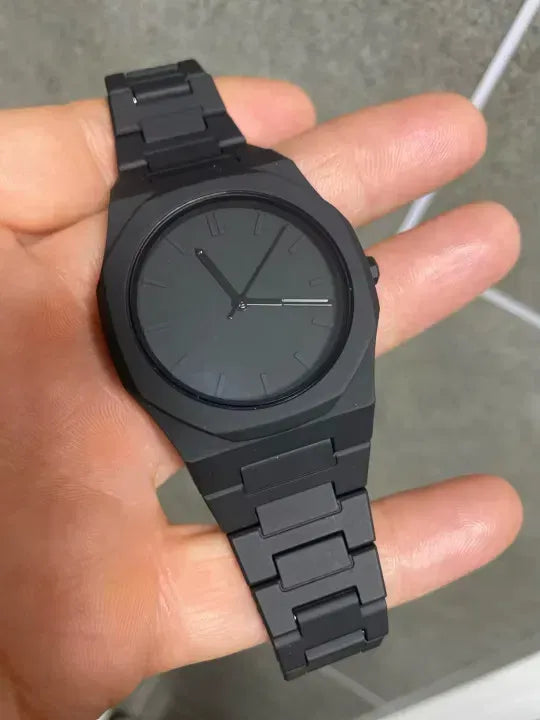 Avec son design épuré et son total look noir, cette montre séduit par sa sobriété et sa prestance. Pensée pour les amateurs de style minimaliste, elle s’adapte parfaitement à une tenue formelle comme décontractée. Son cadran sans chiffres renforce l’allure moderne de l’ensemble.