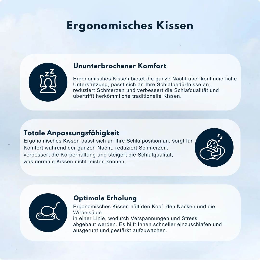 Profitez d’un alignement naturel de la tête et de la colonne grâce à une conception ergonomique étudiée. Sa forme épouse parfaitement les courbes du cou et aide à réduire les tensions accumulées au fil de la journée. Chaque zone est pensée pour offrir un soutien ciblé, favorisant une position de sommeil plus stable.