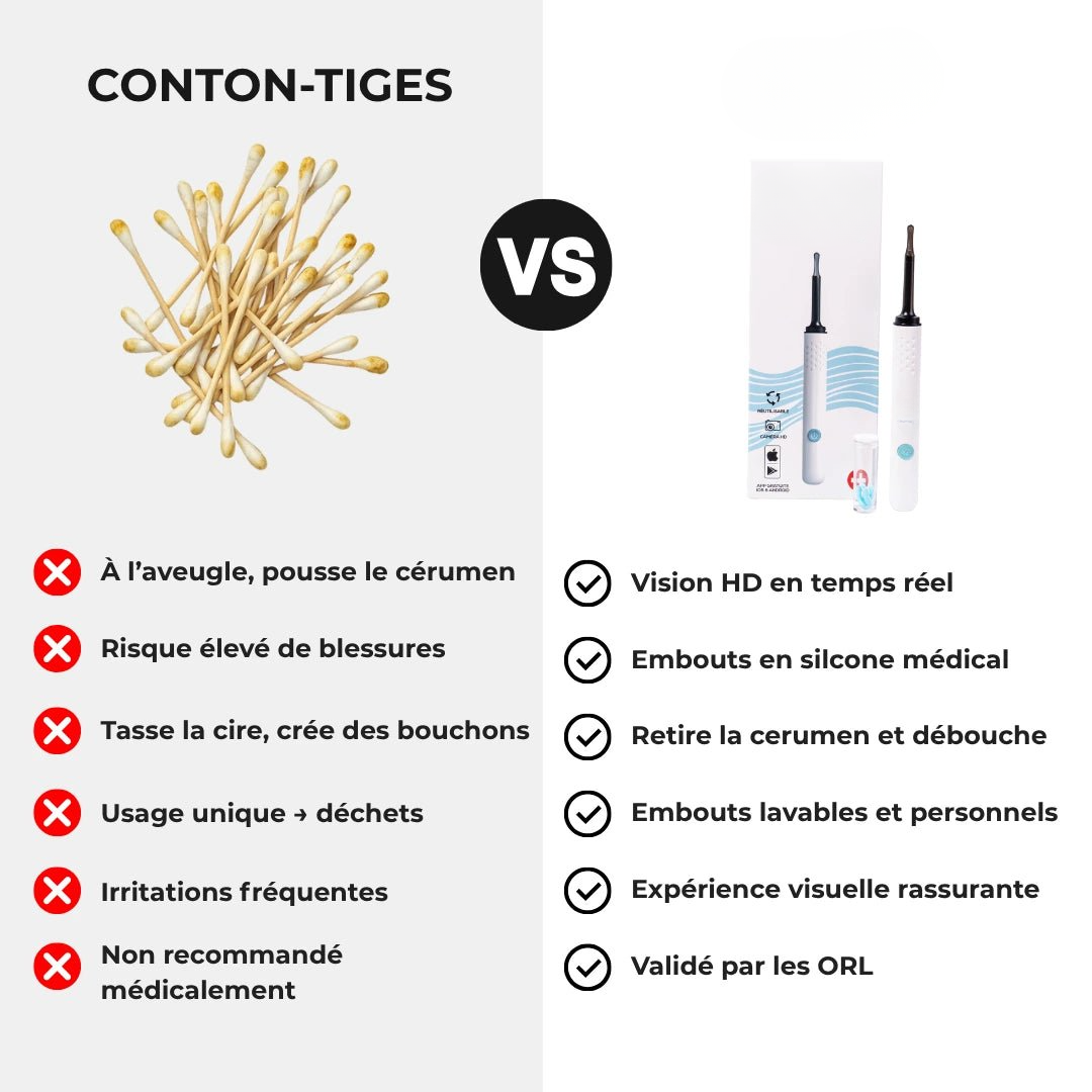 ✔️ Permet un contrôle précis de l’hygiène des oreilles