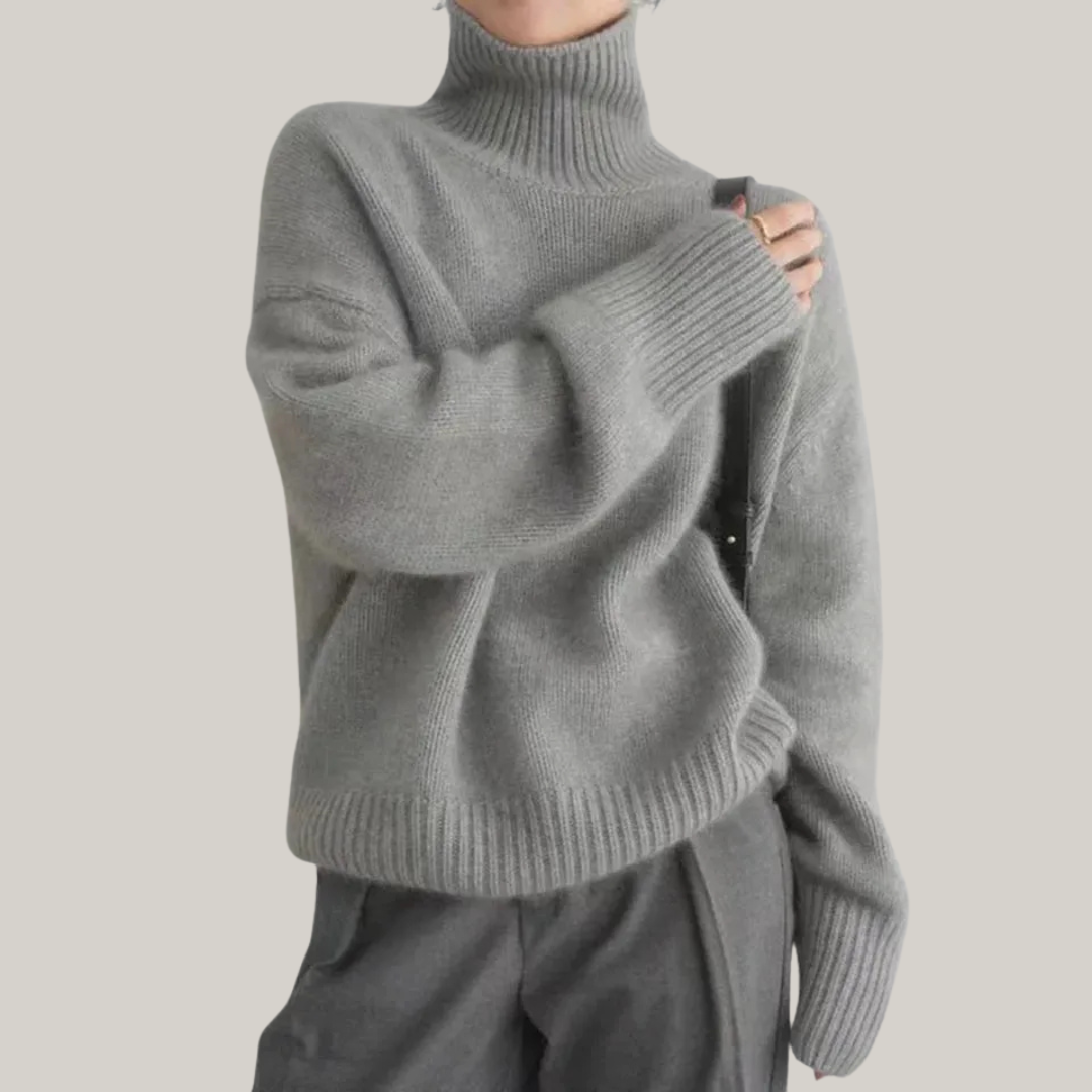 Le col haut et doux ajoute une touche chic au pull tout en protégeant du froid. Les manches légèrement oversize et les finitions côtelées raffinées offrent un look décontracté mais soigné. Chaque détail est pensé pour mettre en valeur la silhouette tout en garantissant un confort optimal.
