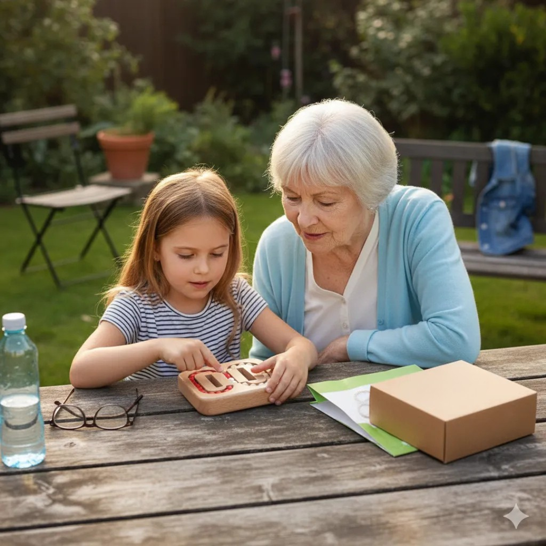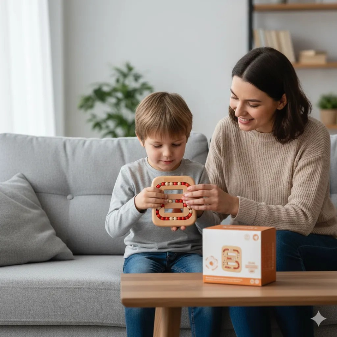 Ce casse-tête en bois stimule la concentration grâce à un parcours de billes fluide et intuitif. Les enfants déplacent les billes avec précision, ce qui renforce la logique tout en créant un moment calme et captivant. Sa forme ergonomique invite à manipuler l’objet facilement, même lors de courtes pauses.