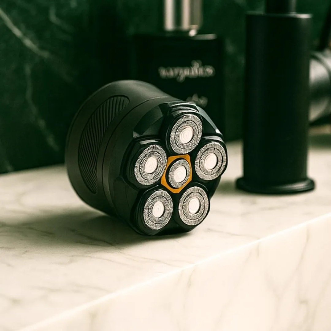 Ce rasoir à 6 têtes offre une grande surface de coupe qui épouse naturellement la forme de la tête. La tête rotative multi-lames assure un passage fluide et un résultat égal, même dans les zones difficiles d'accès. Sa prise en main compacte garantit précision et stabilité à chaque mouvement.