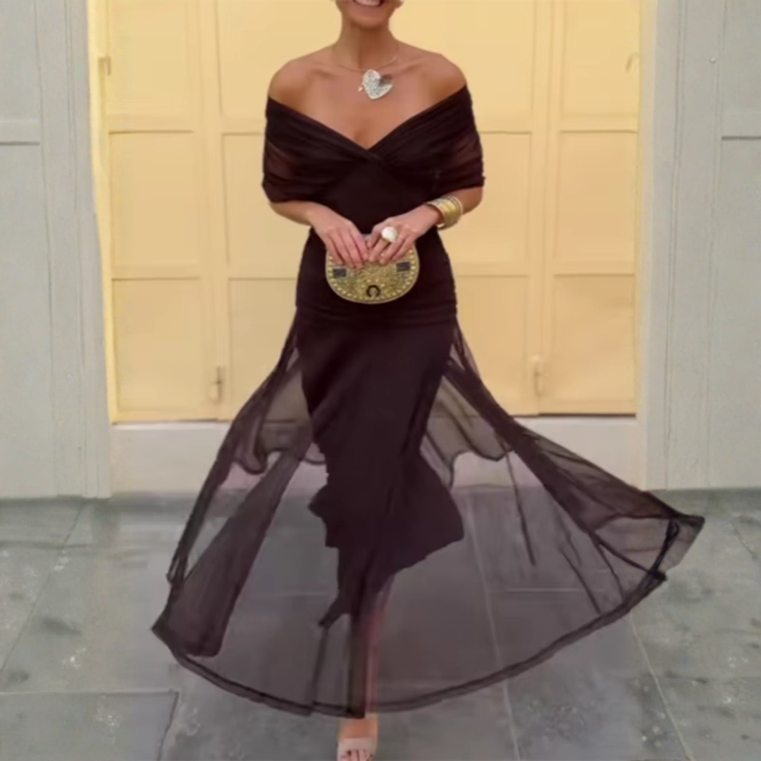 Cette robe longue fluide à manches 3/4 se distingue par son design intemporel et sa coupe flatteuse. Elle est idéale pour les occasions spéciales ou pour ajouter une touche de raffinement à votre quotidien. Son tissu léger et sa silhouette fluide vous garantissent une allure élégante, tout en vous offrant un confort optimal.