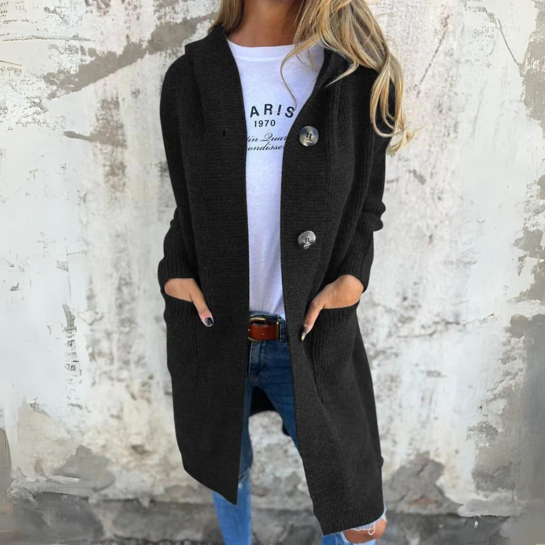 Die großzügigen Taschen und die klassischen Knöpfe machen den Cardigan nicht nur praktisch, sondern auch stilvoll. Dank seiner klaren Linien und der feinen Verarbeitung wird er schnell zu einem unverzichtbaren Lieblingsteil.