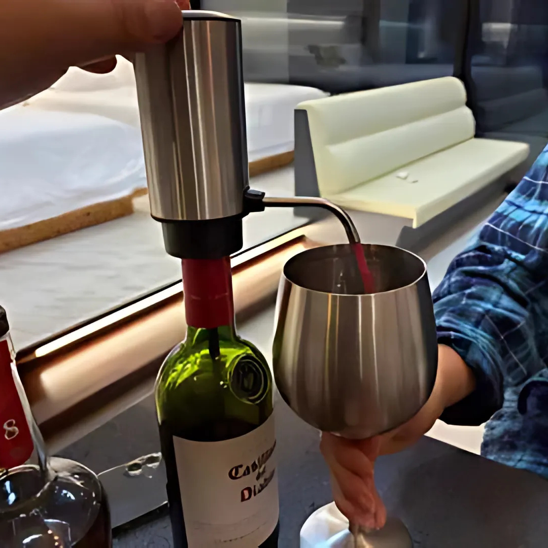 Das Edelstahlgehäuse garantiert Langlebigkeit und modernes Design. Dank des USB-Anschlusses ist der Spender einfach aufladbar – perfekt für zu Hause, Partys oder professionelle Weinverkostungen.