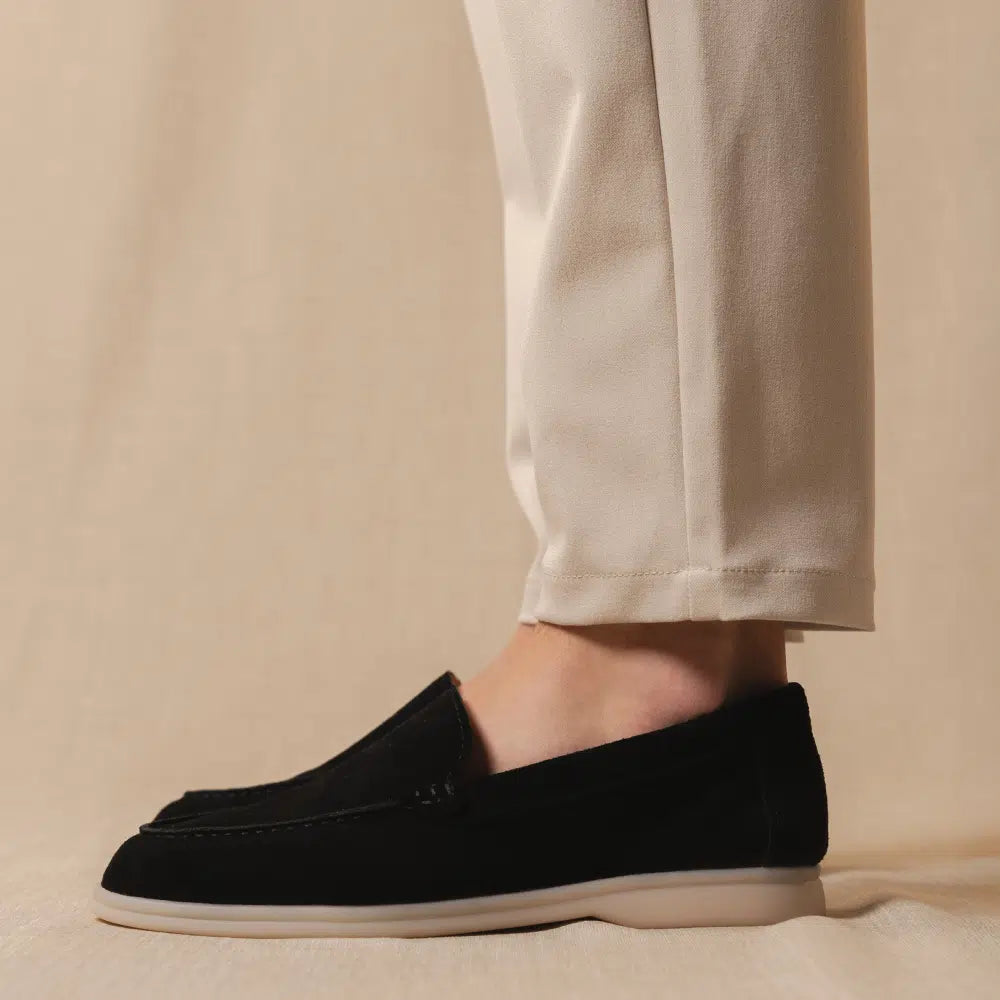 Les mocassins Yacht en daim véritable incarnent le parfait équilibre entre confort et sophistication. Leur design épuré et discret s’adapte aussi bien à une tenue habillée qu’à un look plus décontracté. Fabriqués en daim premium, ils offrent une sensation douce et luxueuse qui sublime chaque pas.